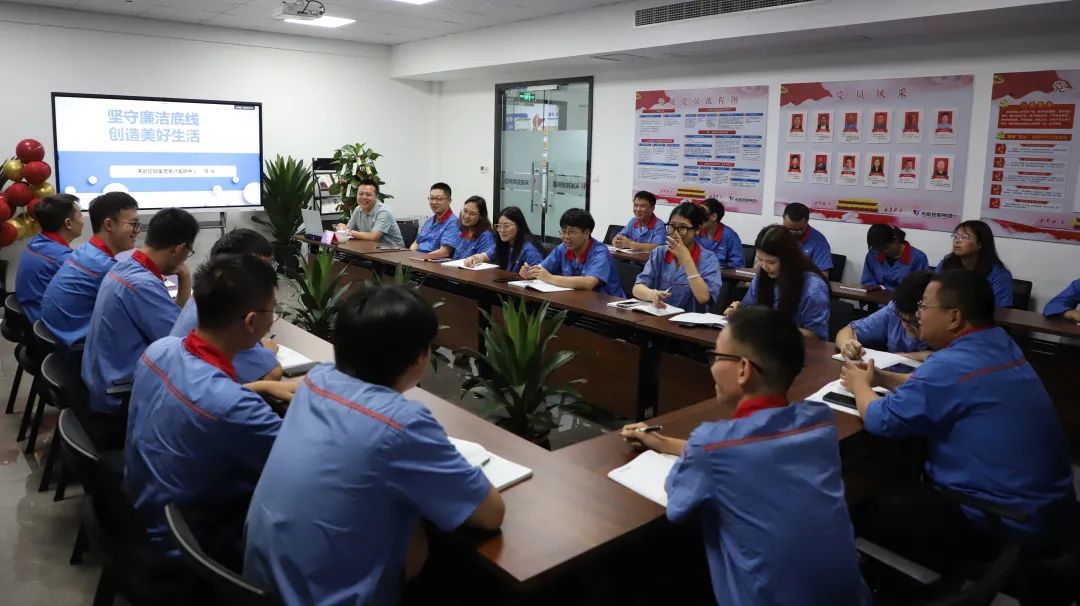 8月23日,工业动力电池公司党支部依托线上平台连通长兴和沭阳两个地区的党员开展8月主题党日活动。会上,通过开展观看廉洁短片、讲述廉洁故事、分享廉洁宣言、撰写廉洁心得等一系列活动,切实将清廉文化建设融入日常、化作经常。