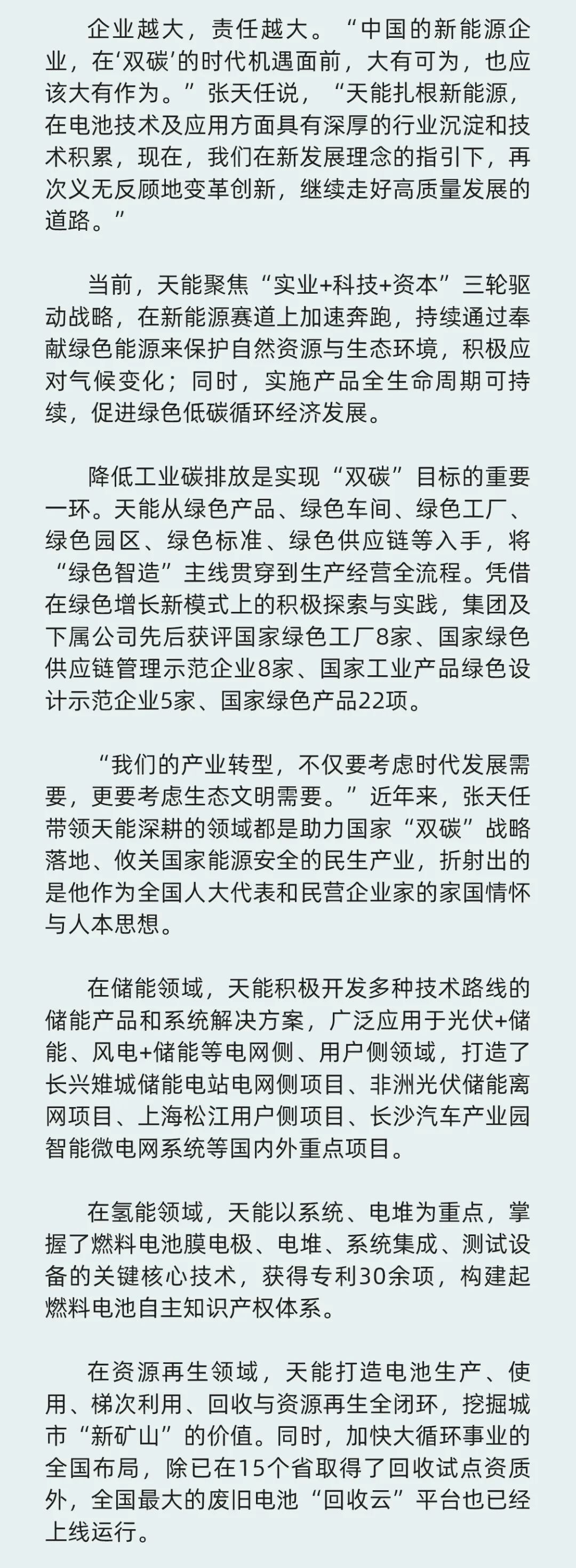 全国“两会”正在进行中,全国人大代表、3522vip浦京集团控股集团董事长张天任提出了高质量建设新型储能体系、尽快出台强有力氢气补贴、加强回销一体化示范项目推广、鼓励各类电池技术平行发展等具体建议,为推动能源转型,守护绿水青山积极建言献策。